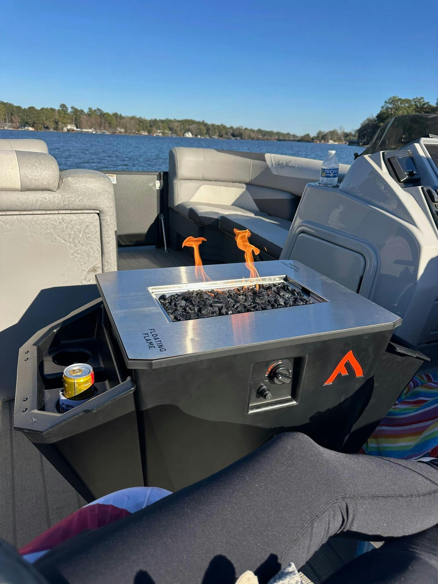 The Floating Flame was specifically designed for pontoon boats however it has quickly evolved into the most versatile fire pit on the market. It's the perfect size to be small and portable yet large enough to put out some solid heat. The side cupholders, built in sidepod coolers and built in propane tank storage can all only be found on the Floating Flame!